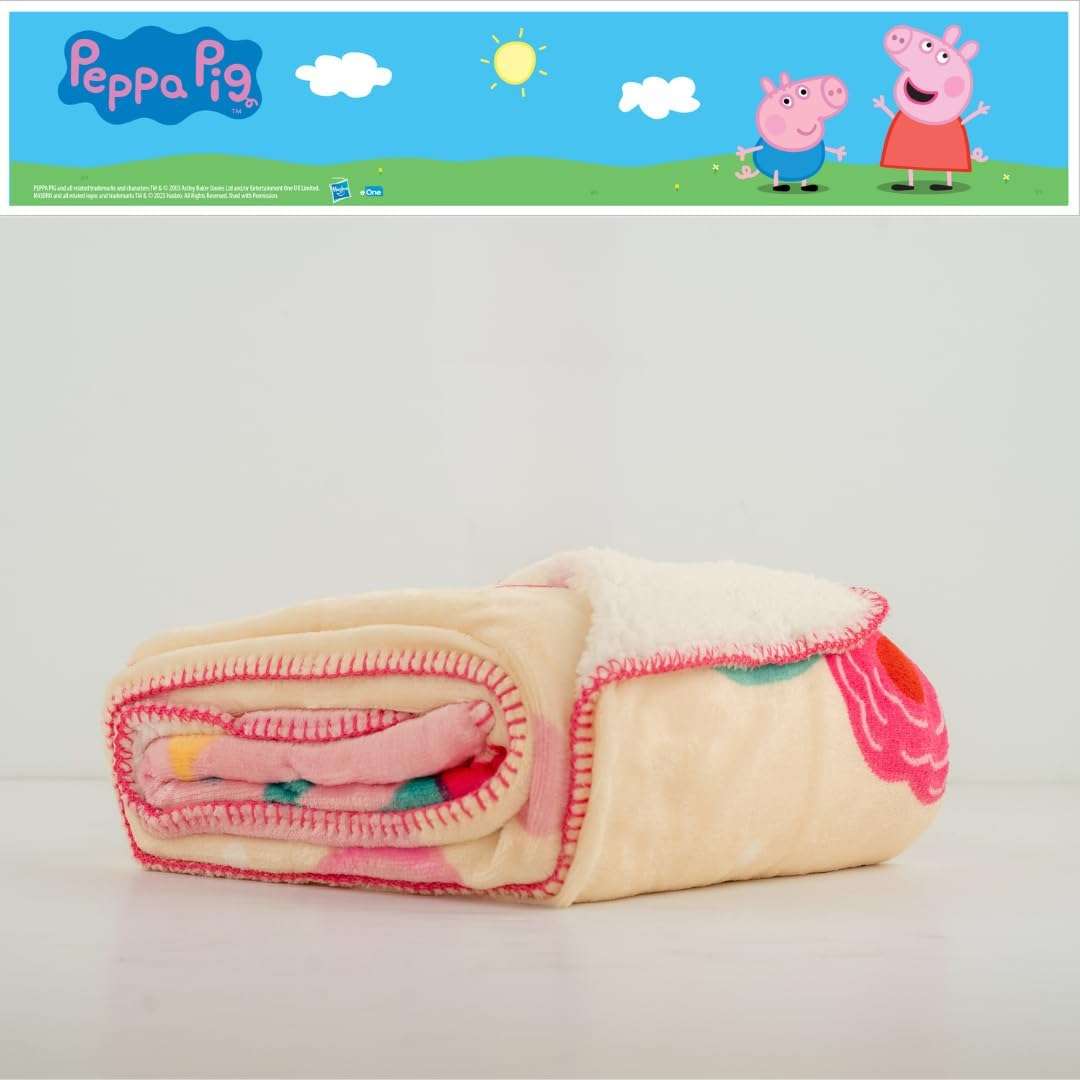PEPPA PIG DESIGN: With our Sherpa Throw, you can experience the charming charm of Peppa Pig. A whimsical and happy scene is created when Peppa and her friend Suzy Sheep come to life against a backdrop of blooming flowers and playful dots. This is more than just a throw; it’s a cozy embrace that brings Peppa Pig’s world into your home.